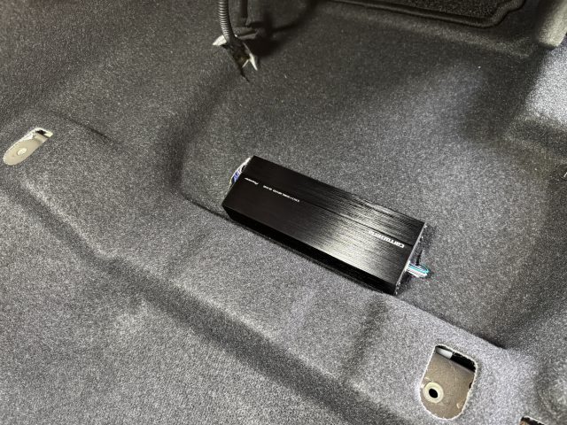 そして、パワーアンプ本体は助手席のシート下へ取付けをしております。