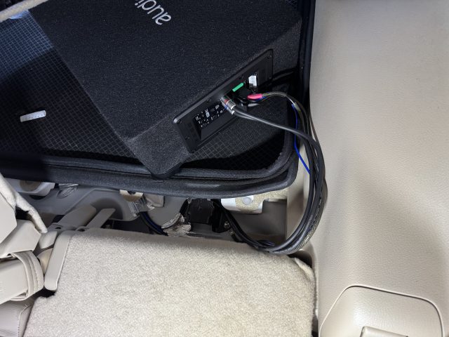 そして、パワーケーブル、RCAケーブルは、サヴウーファー本体をラゲッジスペースに設置するので、そこまでワイヤリングしていきます。
